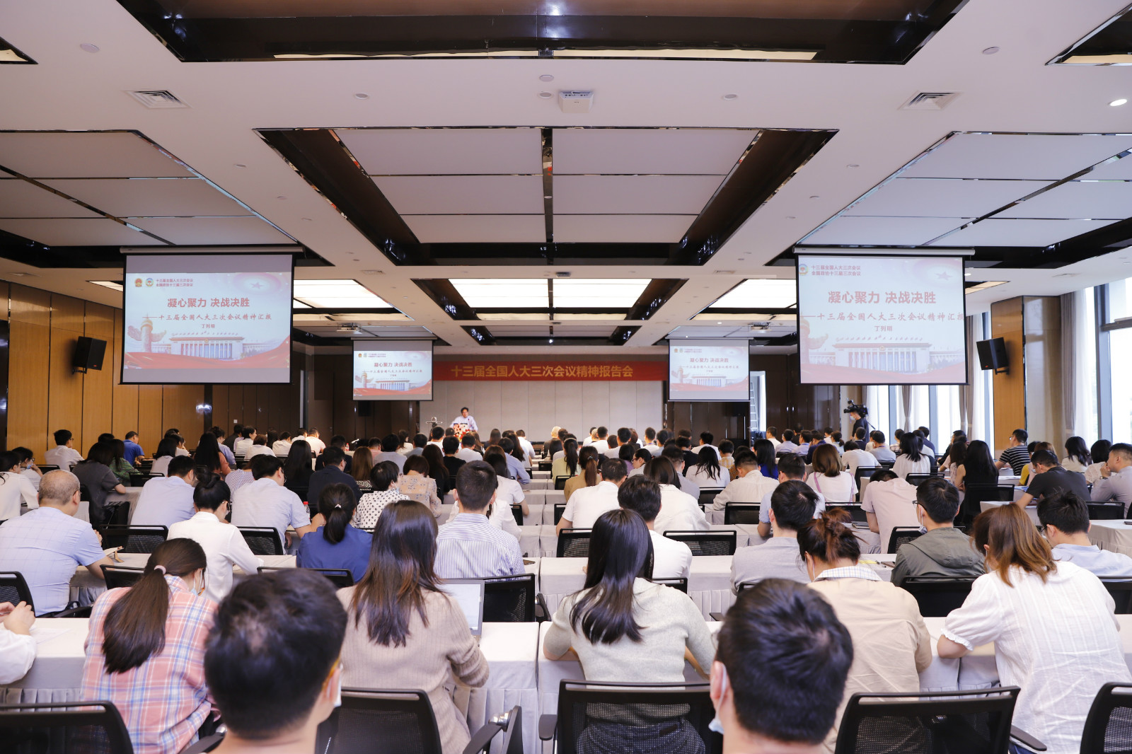 上午十點半,結(jié)束了“代表暢享”的丁博士匆匆趕回貝達藥業(yè)總部,此時的二樓報告廳座無虛席,現(xiàn)場近200名黨員團員以及中層以上干部和遠在北京等地的同事通過視頻連線方式同步學(xué)習(xí)。丁博士分享了履職的體會,向大家講述了香港版國安法、民法典的表決過程及重要性,傳達了習(xí)近平總書記堅持人民至上、不斷造福人民等重要講話精神。希望所有貝達人深入學(xué)習(xí)貫徹,統(tǒng)一思想、凝心聚力,共同推動貝達高質(zhì)量可持續(xù)發(fā)展,為達成年度目標(biāo)、促進地方經(jīng)濟社會建設(shè)、守護人民健康貢獻自己的智慧和力量。