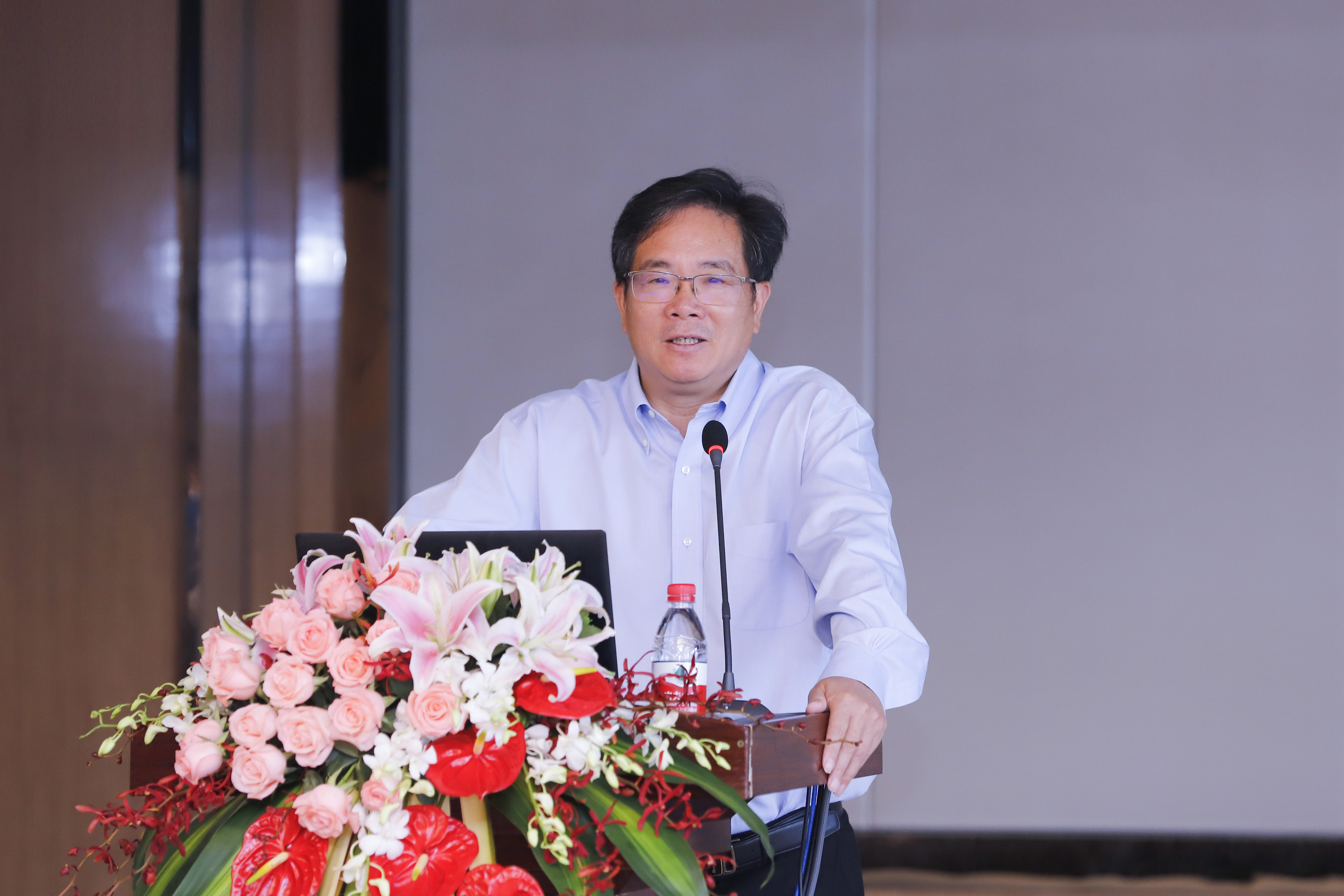 公司報告廳座無虛席,大家認真聆聽丁博士分享