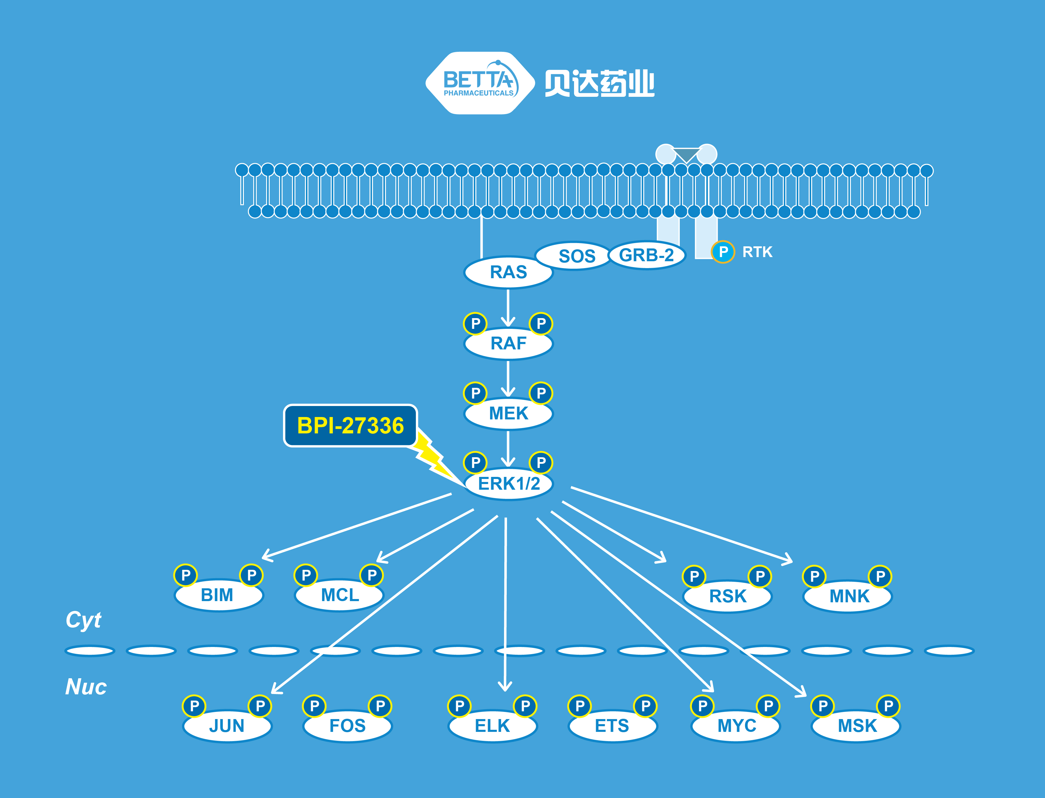 截至目前,全球尚無針對ERK靶點的藥物上市。BPI-27336作為一款新型強效、選擇性ERK1/2小分子口服抑制劑,在臨床前研究的多種疾病模型尤其是KRAS突變腫瘤模型中顯示出優(yōu)秀的抑瘤效果,并具有良好的安全性、耐受性和藥代動力學(xué)特征。BPI-27336有望改善RAS-MAPK通路耐藥、提升療效,并可望為KRAS突變腫瘤這一個無藥可治的世界性難題帶來突破。期待在合作中心和專家們的幫助下,加快推進臨床研究進程,為患者提供新的治療方案,滿足迫切的臨床需求。
