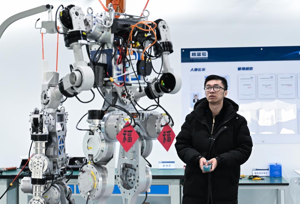 ??2月24日,湖北武漢格藍若智能技術(shù)股份有限公司員工在調(diào)試人形機器人。新華社記者杜子璇 攝