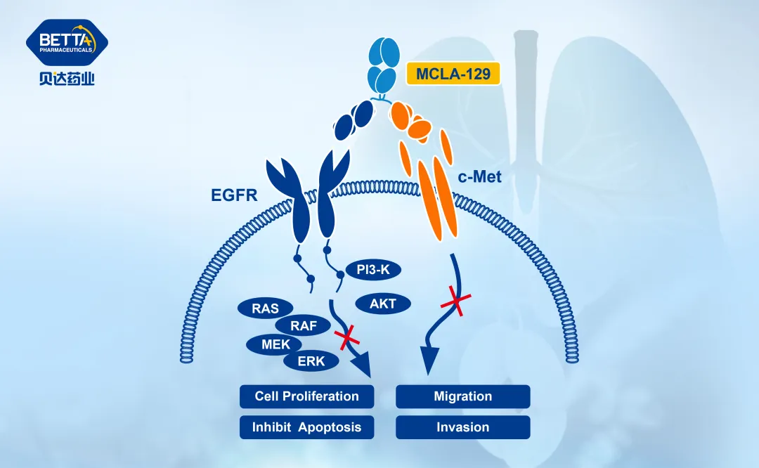 近日,貝達藥業(yè)收到國家藥品監(jiān)督管理局(以下簡稱“NMPA”)簽發(fā)的《藥物臨床試驗批準(zhǔn)通知書》(通知書編號:2025LP02340、2025LP02341、2025LP02342),公司申報的注射用MCLA-129與鹽酸恩沙替尼膠囊聯(lián)用的藥物臨床試驗申請已獲得NMPA批準(zhǔn)。本次聯(lián)合用藥擬用于MET擴增/過表達的晚期實體瘤患者。 △MCLA-129作用機理圖 MCLA-129是貝達藥業(yè)通過戰(zhàn)略合作從荷蘭Merus公司引進的項目。 MCLA-129是一款針對表皮生長因子受體(EGFR)和細(xì)胞間質(zhì)上皮轉(zhuǎn)化因子(c-Met)雙靶點的雙特異性抗體,可同時阻斷EGFR和c-Met的信號傳導(dǎo),抑制腫瘤的生長和存活,且可經(jīng)增強的抗體依賴的細(xì)胞介導(dǎo)的細(xì)胞毒性作用(ADCC)進一步提高對腫瘤細(xì)胞的殺傷潛能。 △恩沙替尼作用機理圖 鹽酸恩沙替尼膠囊(貝美納?)是一種間質(zhì)表皮轉(zhuǎn)化因子(c-Met)/間變性淋巴瘤激酶(ALK)/C-ros肉瘤致癌因子-受體酪氨酸激酶(ROS-1)等多靶點抑制劑,由貝達藥業(yè)與控股子公司Xcovery Holding, Inc. 共同開發(fā)。恩沙替尼已獲得中國NMPA和美國食品藥品監(jiān)督管理局(FDA),以及澳門特別行政區(qū)藥物監(jiān)督管理局批準(zhǔn)上市,用于治療ALK突變晚期非小細(xì)胞肺癌,并已啟動歐洲上市申請程序。近日,恩沙替尼已在美國開出首張?zhí)幏絾巍?/span> c-Met又名肝細(xì)胞生長因子受體(hepatocyte growth factor receptor,HGFR),由MET基因編碼,是一種具有自主磷酸化活性的跨膜受體,屬于酪氨酸激酶受體(RTKs)超家族。HGF/c-Met是一個獨特又復(fù)雜的信號通路,HGF與c-Met的Sema域結(jié)合使c-Met發(fā)生二聚,進一步酪氨酸磷酸化,激活眾多下游信號通路,如PI3K-Akt、Ras-MAPK、STAT和Wnt/β-catenin等,從而發(fā)揮其促細(xì)胞增殖、細(xì)胞生長、細(xì)胞遷移、侵襲血管及血管生成等效應(yīng),在組織正常發(fā)育和腫瘤進展中發(fā)揮關(guān)鍵作用。c-Met通路異常激活主要包括MET 14號外顯子(MET Exon14)跳躍突變、MET擴增和MET過表達3種類型。其中MET擴增或過表達是非小細(xì)胞肺癌(NSCLC)、頭頸鱗癌(HNSCC)以及胃癌/胃食管交界癌(GC/GEJ)等實體瘤的原發(fā)致癌驅(qū)動基因和耐藥機制之一,現(xiàn)有治療對MET異?;颊咝Ч邢蓿w預(yù)后較差。針對MET擴增或過表達的NSCLC、HNSCC以及GC/GEJ,存在極大未滿足的臨床需求。MET抑制劑的臨床研究為這類患者提供了新希望,未來需結(jié)合精準(zhǔn)分型與聯(lián)合策略優(yōu)化療效,提高整體生存率。 貝達藥業(yè)研發(fā)總裁兼首席醫(yī)學(xué)官毛力教授表示:“此次獲批,標(biāo)志著MCLA-129和恩沙替尼聯(lián)合用藥方案進入臨床探索階段。兩藥聯(lián)合有望通過多通路協(xié)同作用抑制腫瘤增殖,延長無進展生存期(PFS)。我們期待通過臨床試驗評估其在MET擴增或過表達晚期實體瘤患者中的療效與安全性,為更多患者提供治療選擇?!?/span>